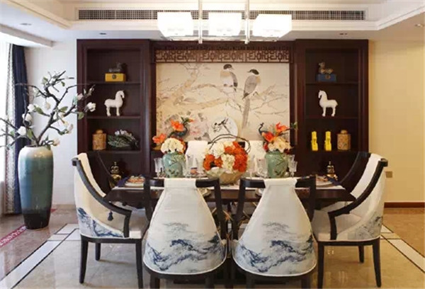 其他:淡雅的白色彷如一张纯净的白色宣纸,而浓重的褐色以及唯美的青色便成为这宣纸上跃然显现的画作。设计师用现代的手法结合传统中式中柔美和雅致,为我们诠释了一个全新的中式之家。在这里,设计师可以尽情写意,花鸟画的背景墙、镂空格栅、青花座椅……众多元素构成了这个空间的一切,走进居室就如同置身一副意境动人的幽幽水墨画中,唯美、淡雅,让人不禁沉醉其中,久久品味。